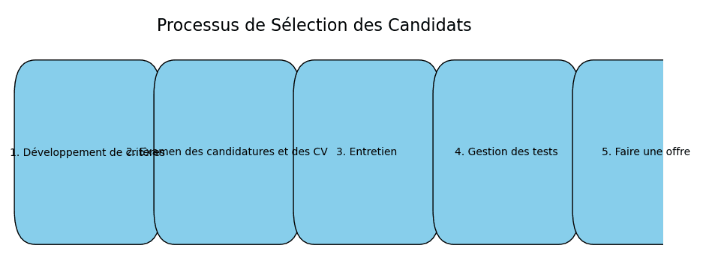 - Faire l’offre. La dernière étape du processus de sélection consiste à offrir un poste au candidat choisi. L’élaboration d’une offre par e-mail ou par lettre constitue parfois une partie plus formelle de ce processus. La rémunération et les avantages seront définis dans une offre. Nous en discutons au chapitre 6 « Rémunération et avantages sociaux » .