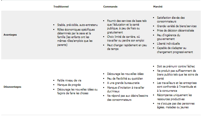- Tous les systèmes économiques ont des avantages et des inconvénients.