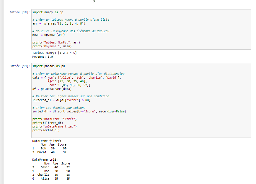 Nous avons vu comment installer Numpy et Panda, puis les codes à utiliser pour bénéficier des fonctions.