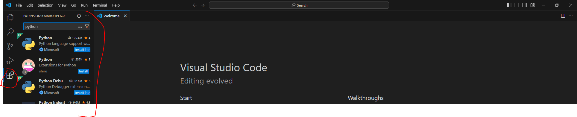 - Install the Python extension for Visual Studio Code by clicking on “Extensions” in the left-hand menu and searching for “Python”.