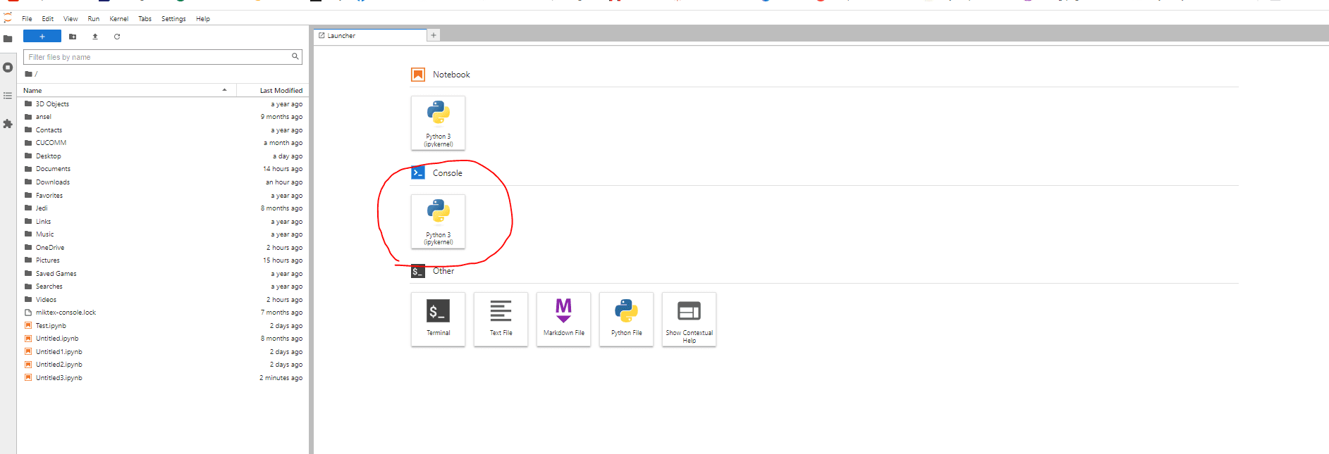 – On Jupyterlab: you’ll immediately find the Python console to start installing Panda, Numpy or Matplotlib and coding: