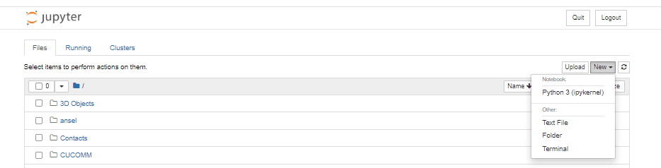 – Sur Jupyter Notebook : Cliquez sur NEW puis sur Python 3 (Ipykernel), et après vous êtes prêt pour installer vos packages et pour coder: