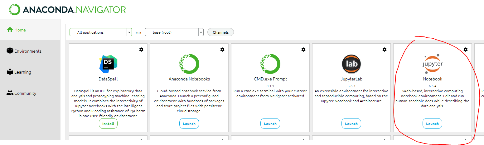 - Launching Jupyter Notebook: Anaconda includes Jupyter Notebook, an interactive environment for executing Python code and displaying visualizations. You can launch it from the “Home” tab in Anaconda Navigator.