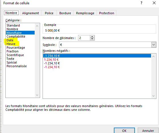 Example : I’ve decided to format my series of numbers as dates, so I right-click and select “cell format”, then choose the type of numeric format I prefer. I’m going to choose the euro currency format.
