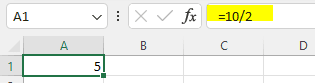 Division: To divide one number by another, simply divide the value of the first number by the value of the second number. For example, 10 / 2 = 5.