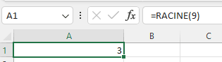 Square root: To find the square root of a number, you need to find a number that, when multiplied by itself, gives the original number. For example, √9 = 3, because 3 * 3 = 9. (I used =RACINE() )