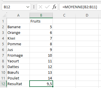 - Fonction MOYENNE : Cette fonction calcule la moyenne de plusieurs nombres. Par exemple :