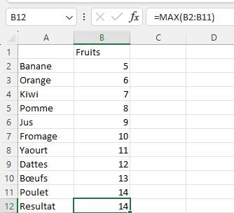 - Fonction MAX : Cette fonction renvoie la valeur maximale d’un ensemble de nombres. Par exemple :