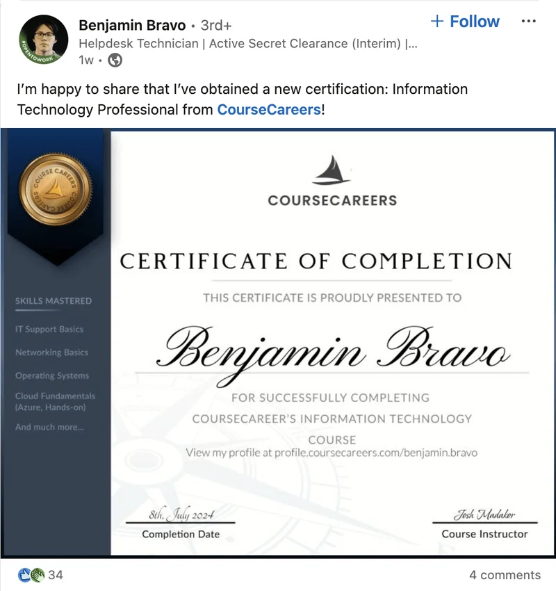 Our partner CourseCareers offers a 14-day money-back guarantee on all their courses. This applies to both single payments and payment plans. The 14-day period starts immediately after purchase. Please note: users are allowed one refund per course, and those who complete the course and receive their certificate are not eligible for a refund, even within the 14 days.